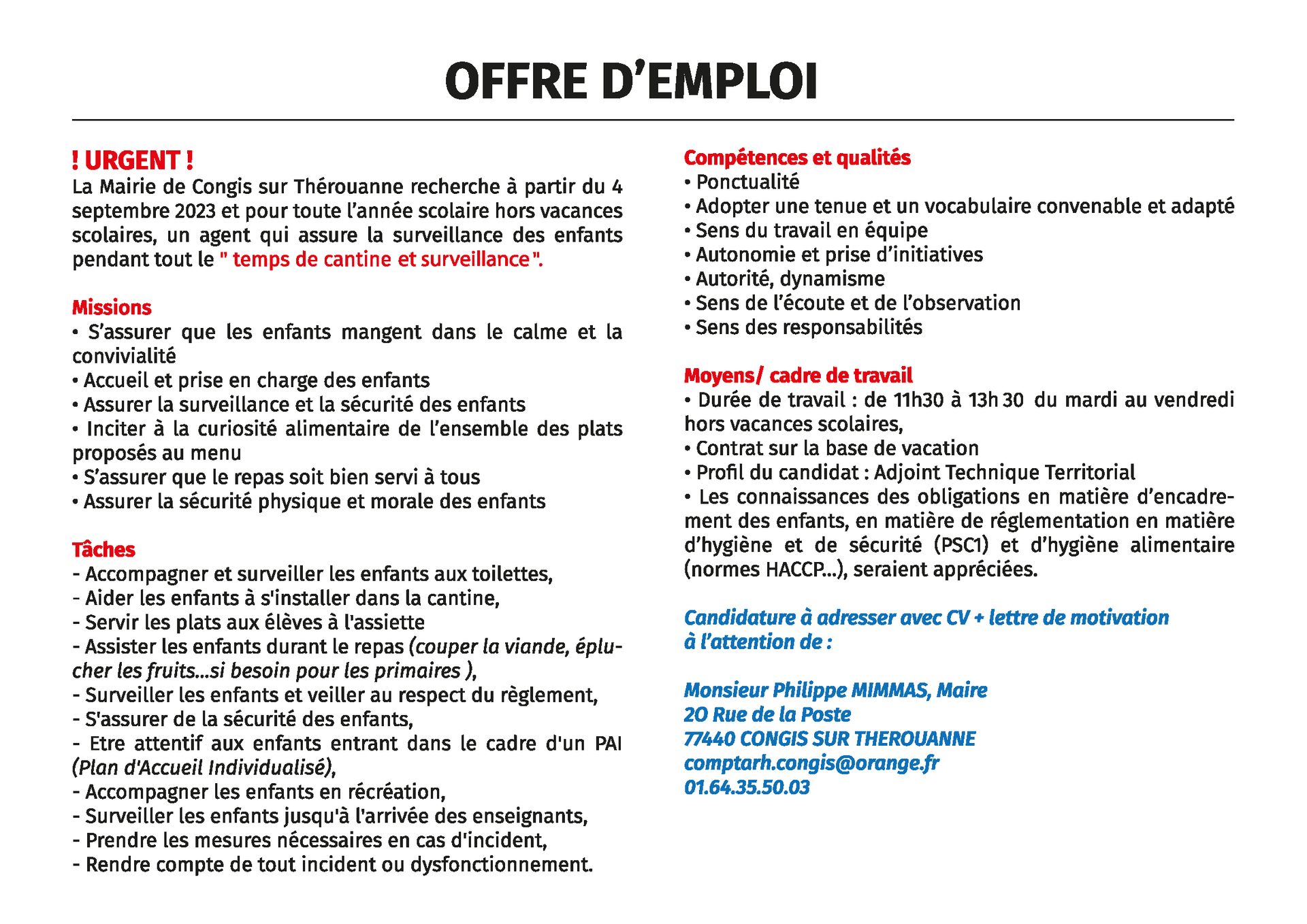 Pour tout renseignement pour connaitre les conditions et les prix , vous pouvez contacter la Mairie de Congis s/Th